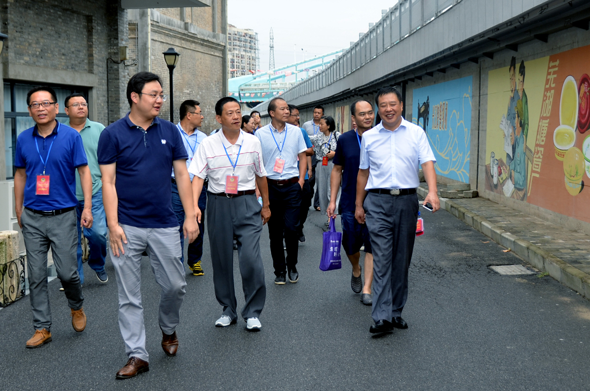 卞總向調(diào)研團(tuán)匯報了園區(qū)的歷史傳承、改造歷程及目前的基本發(fā)展情況。帶領(lǐng)參觀了益新面粉大樓及大礱坊歷史文化長廊,作為蕪湖工業(yè)象征的“兩個半煙囪”的僅存見證,百年益新面粉大樓在經(jīng)過修整后也再次踏上新的征程。而在今年8月正式竣工的大礱坊歷史文化長廊,利用墻繪的方式,生動的記錄了礱的誕生以及大礱坊的工業(yè)歷史變遷,長達(dá)450米的手工墻繪,目前已成為蕪湖的一張文化名片。