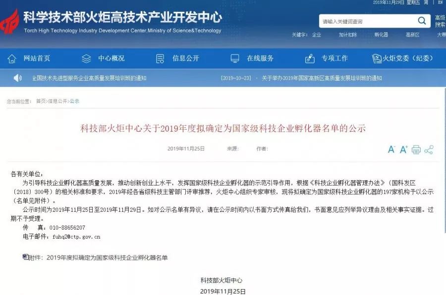 2019年11月25日,國家科技部火炬中心發(fā)布了“關(guān)于2019年度擬確定為國家級科技企業(yè)孵化器名單的公示(國科發(fā)區(qū)﹝2018﹞300號)”的通知,蕪湖礱坊科技企業(yè)孵化器(大礱坊科技文化園)正式通過“國家級科技企業(yè)孵化器”認定。