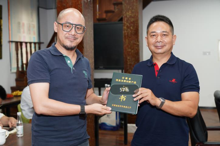 會(huì)議開始前,鏡湖區(qū)經(jīng)信局局長(zhǎng)方仲明向企業(yè)授予安徽省第七批信息消費(fèi)創(chuàng)新產(chǎn)品證書。